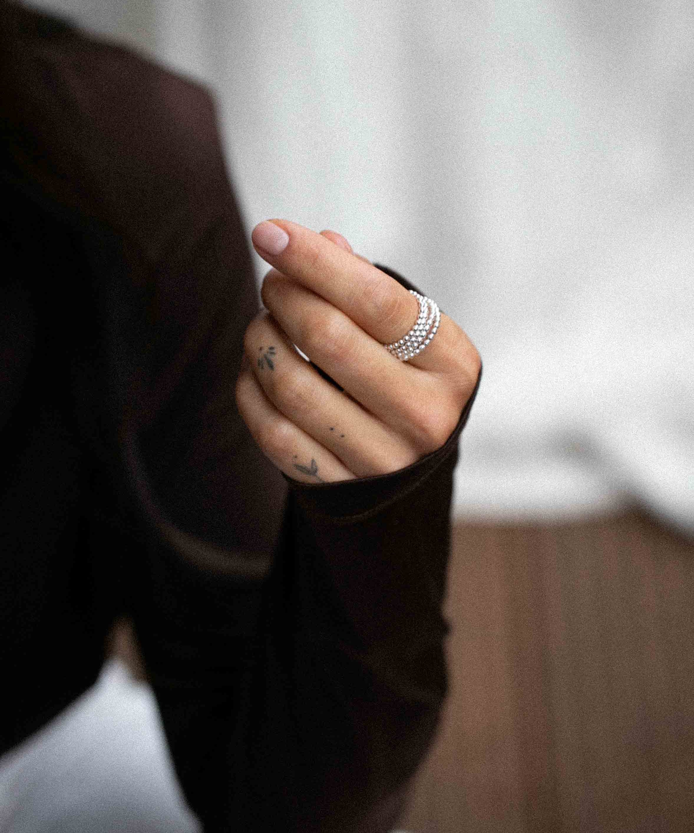 The CLEO Collection pays homage to the timeless and classical beauty of pure silver. Just as water droplets dance and glisten in the interplay of light, our pieces capture the clarity of their shimmer. Much like water's ability to gracefully flow and then transform into solid ice, the hand-polished silver of CLEO designs celebrates the elegance of fluidity in a solid form. Moreover, this collection is a continuation of a personal study of contrasts, blending delicacy with boldness and softness with firmness.