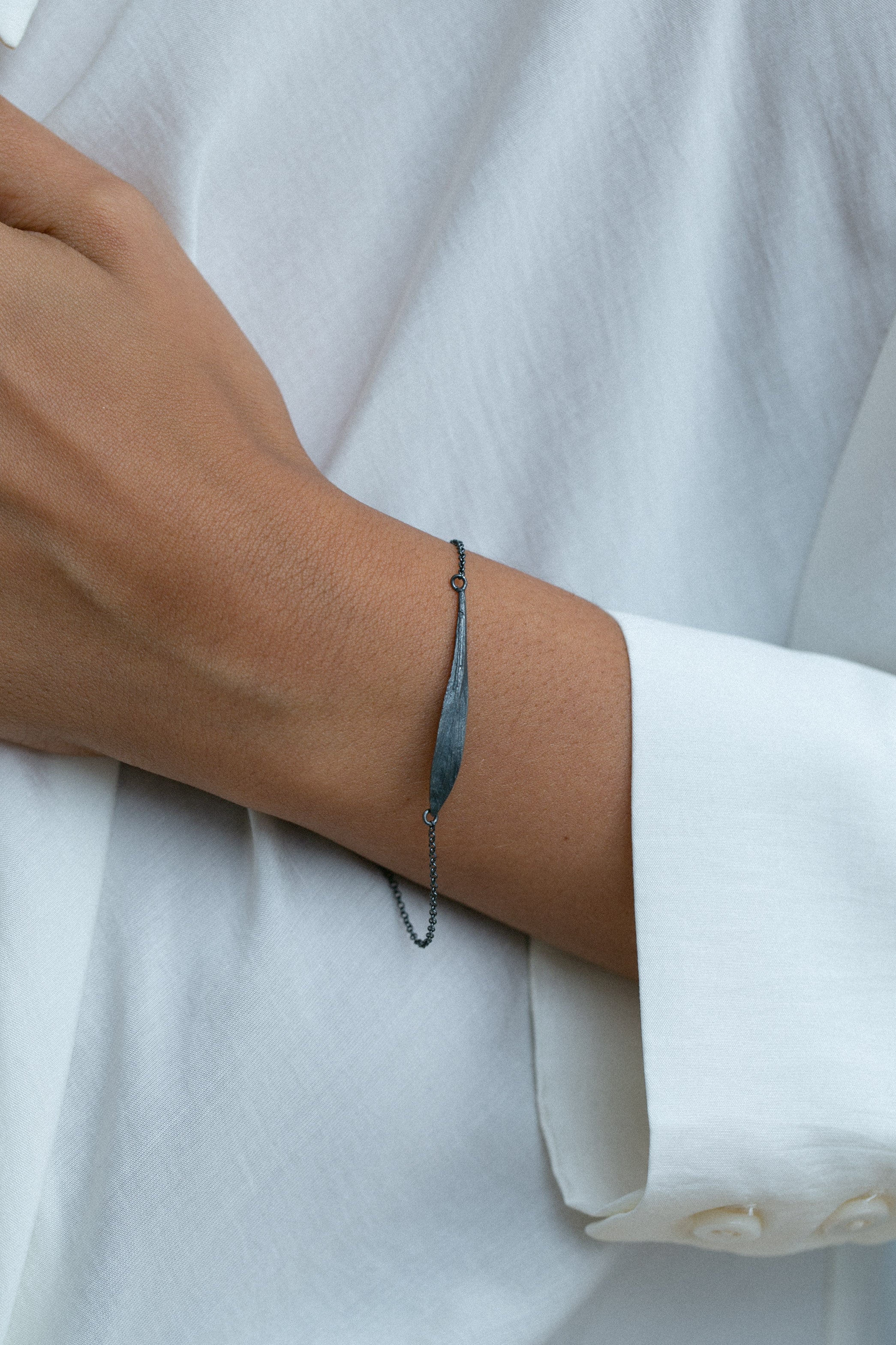 A subtle, organic form. Light and comfortable to wear, with a quiet strength in its structure. Designed and created by Małgosia and Anastazja in a traditional goldsmith workshop in Germany.