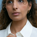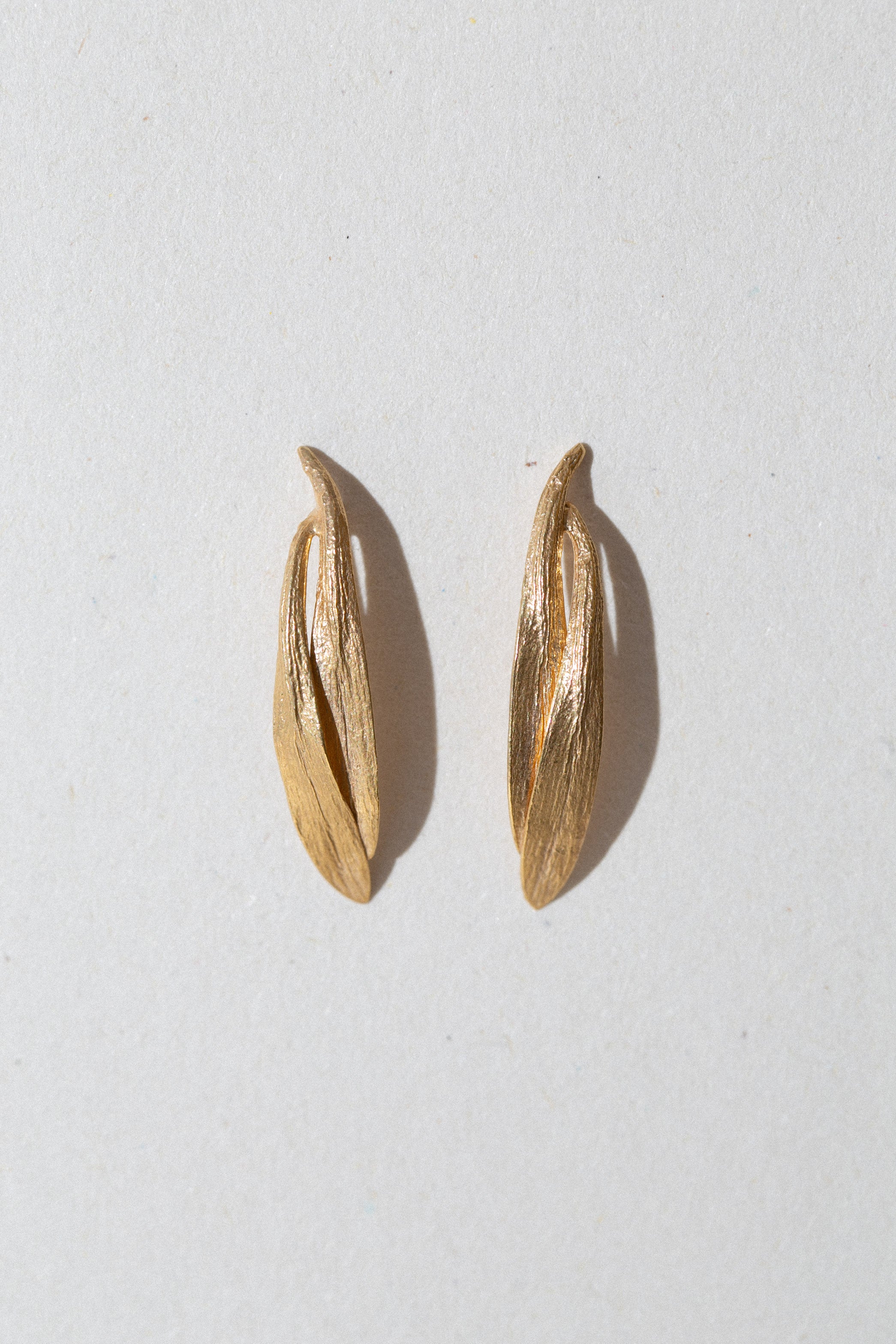 A subtle meeting of two organic forms, shaped into a unique earrings. It balances delicacy and clarity. Light and comfortable to wear, yet never overlooked. Designed and created by Małgosia and Anastazja in a traditional goldsmith workshop in Germany.
