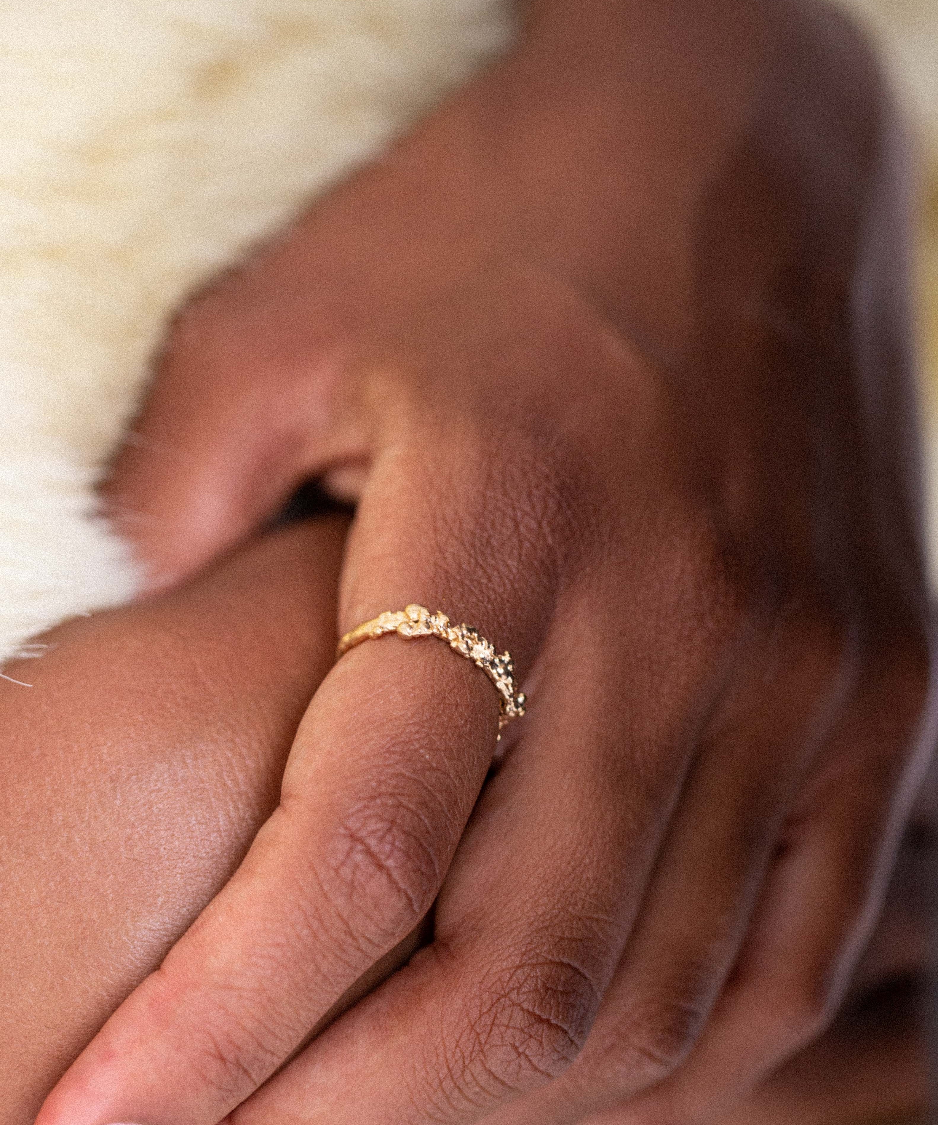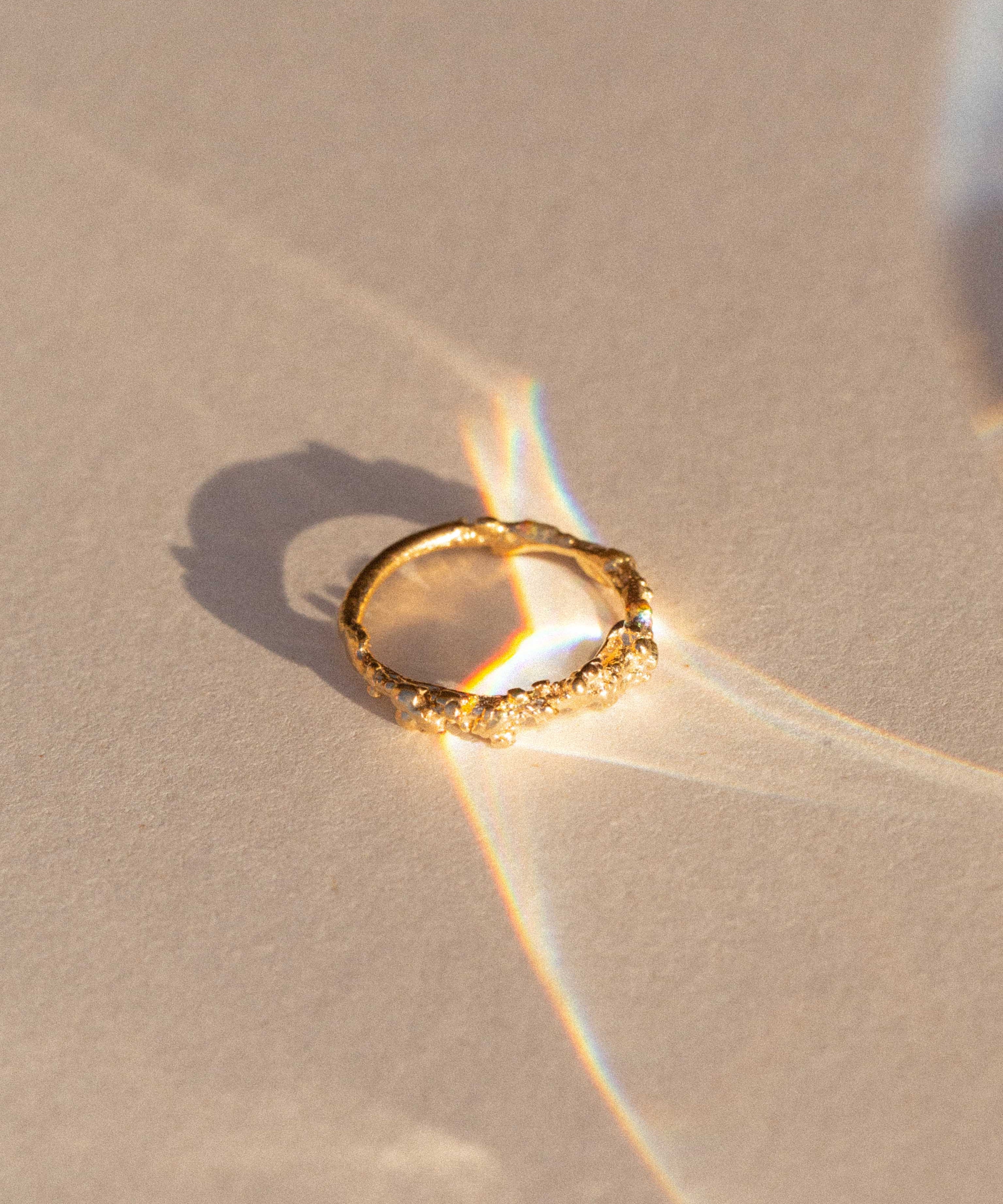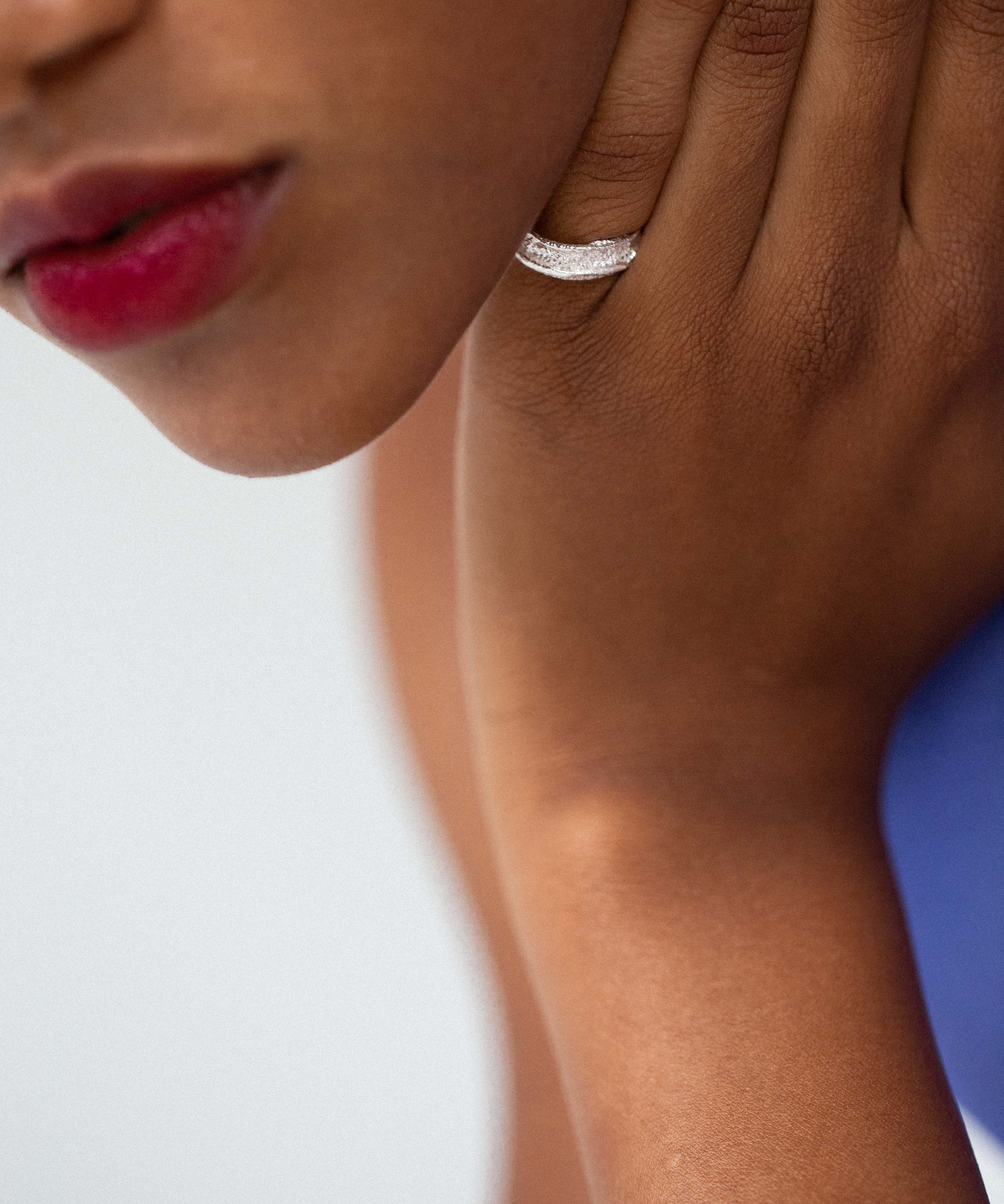 Our rings are shaped by texture and form. From delicate bands to sculptural statements, each piece is handcrafted and designed to feel effortless on the hand.