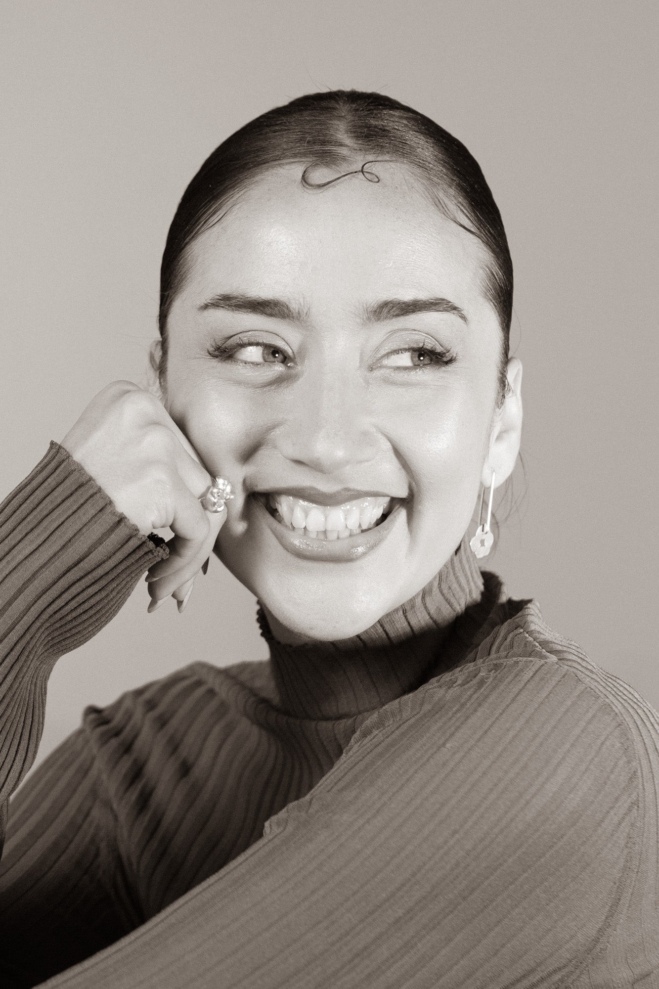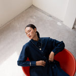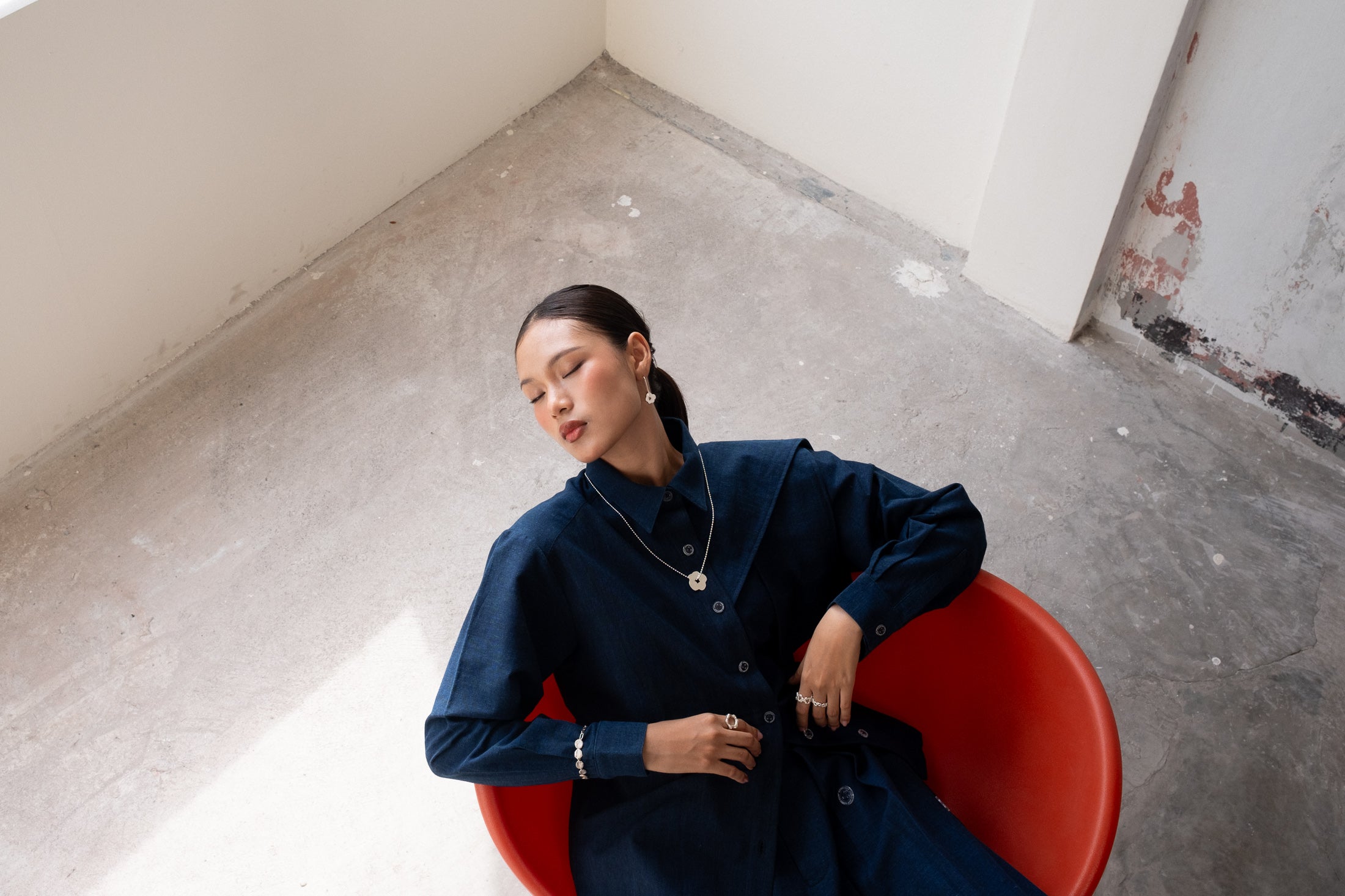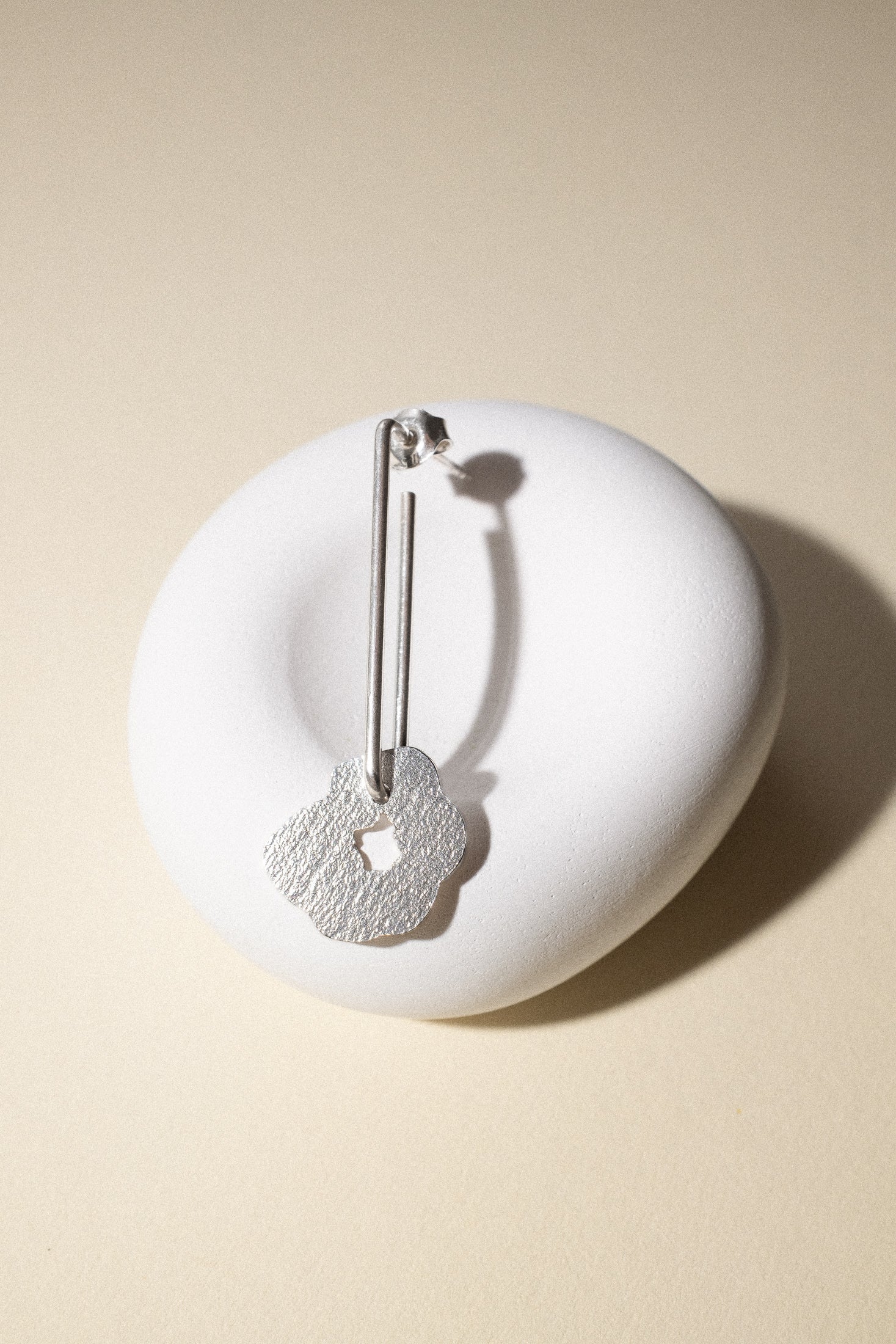 Eine organische Form, die an einem feinen, vertikalen Stab hängt. Inspiriert von der Idee von Ursprung und Kontinuität, gleicht das Stück eine klare, lineare Struktur mit einer weichen, unregelmäßigen Form aus. Angenehm zu tragen, folgt es der Linie des Halses. Entworfen und gefertigt von Małgosia und Anastazja in einer traditionellen Goldschmiedewerkstatt in Deutschland.