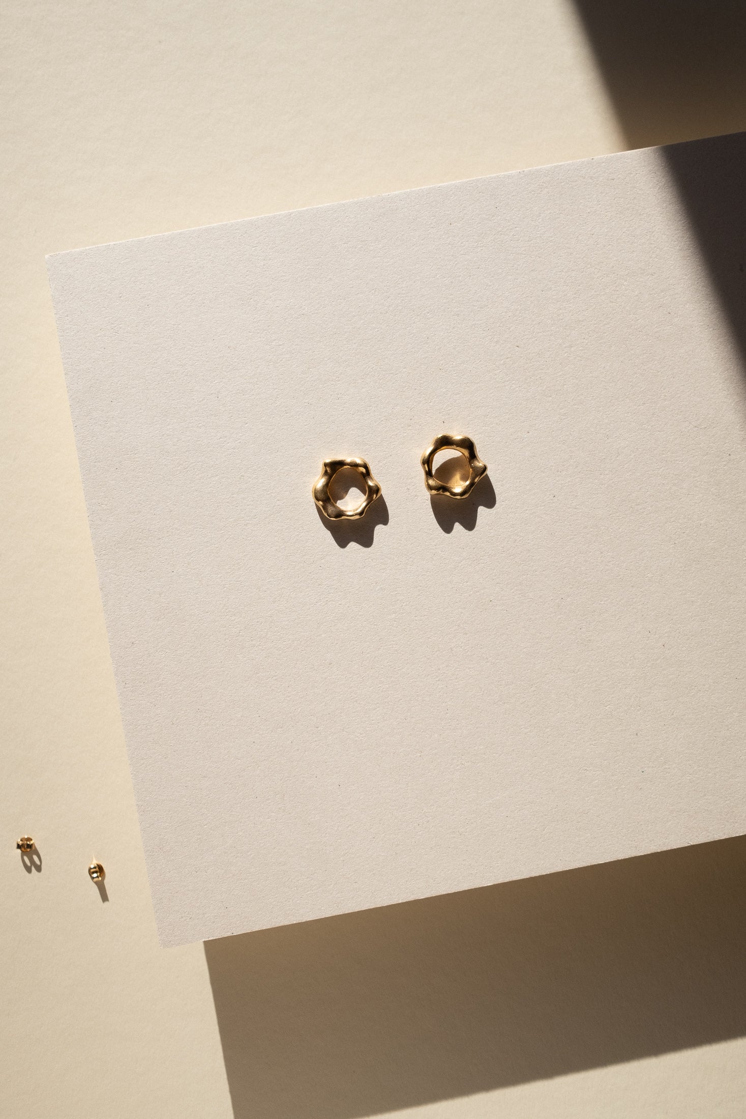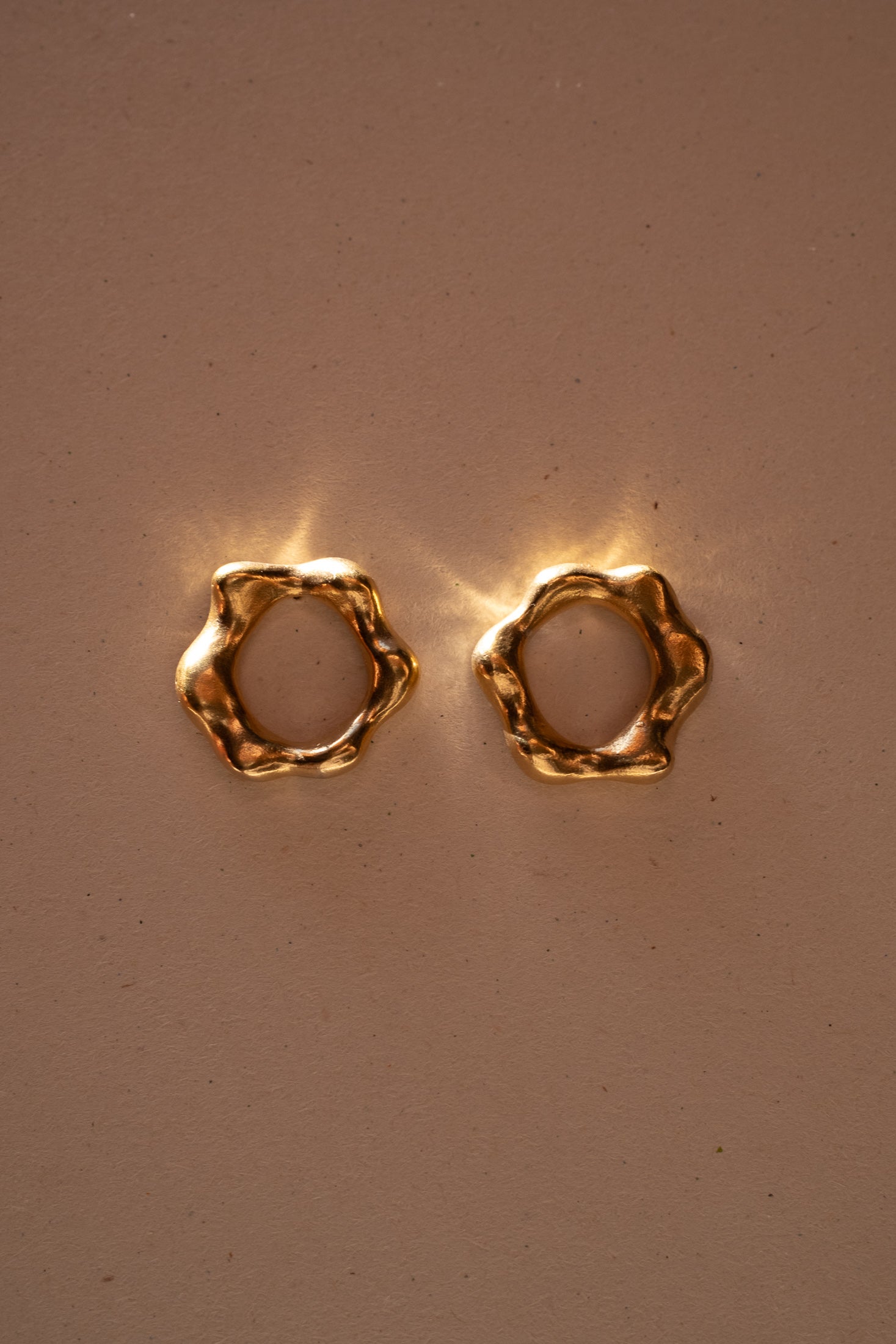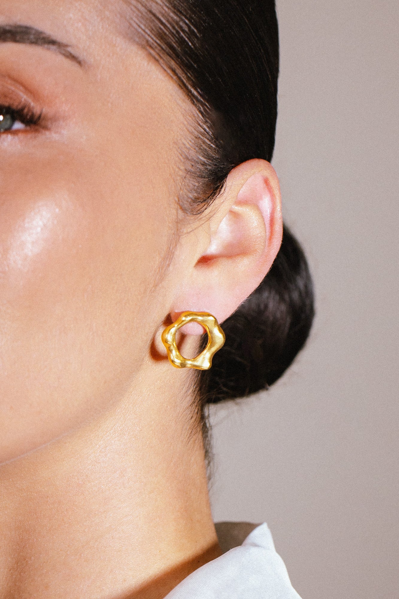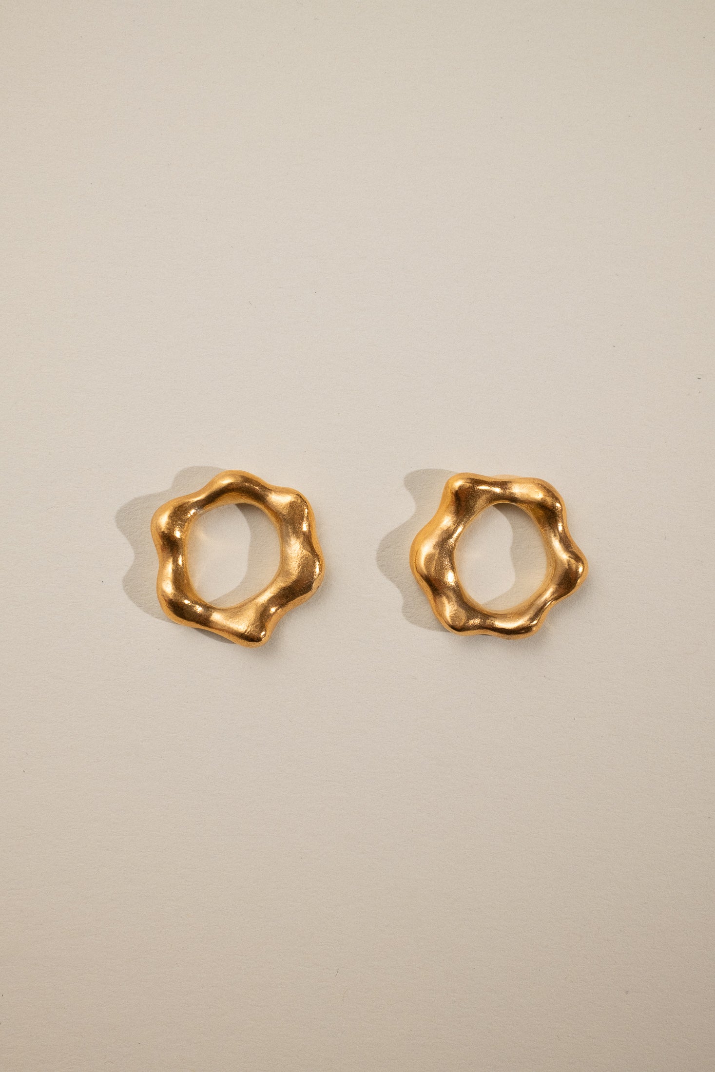 Eine organische, runde Form, geprägt von weichen, unregelmäßigen Konturen. Inspiriert von den Arbeiten Hans Arps, erhalten diese Ohrringe eine skulpturale, biomorphe Präsenz. Angenehm zu tragen, liegen sie eng am Ohr an und fangen das Licht mit einem subtilen, natürlichen Schimmer ein. Entworfen und hergestellt von Małgosia und Anastazja in einer traditionellen Goldschmiedewerkstatt in Deutschland.