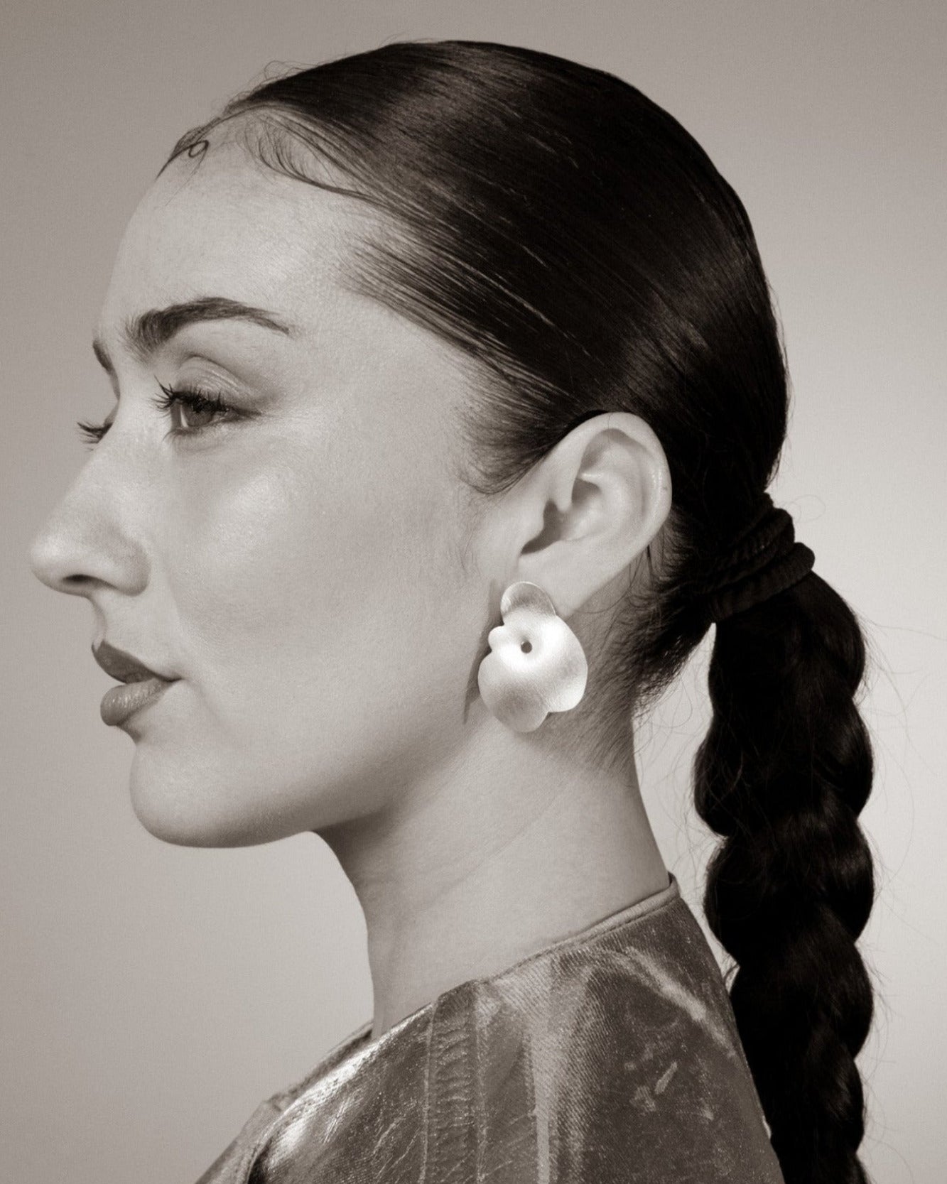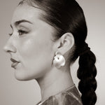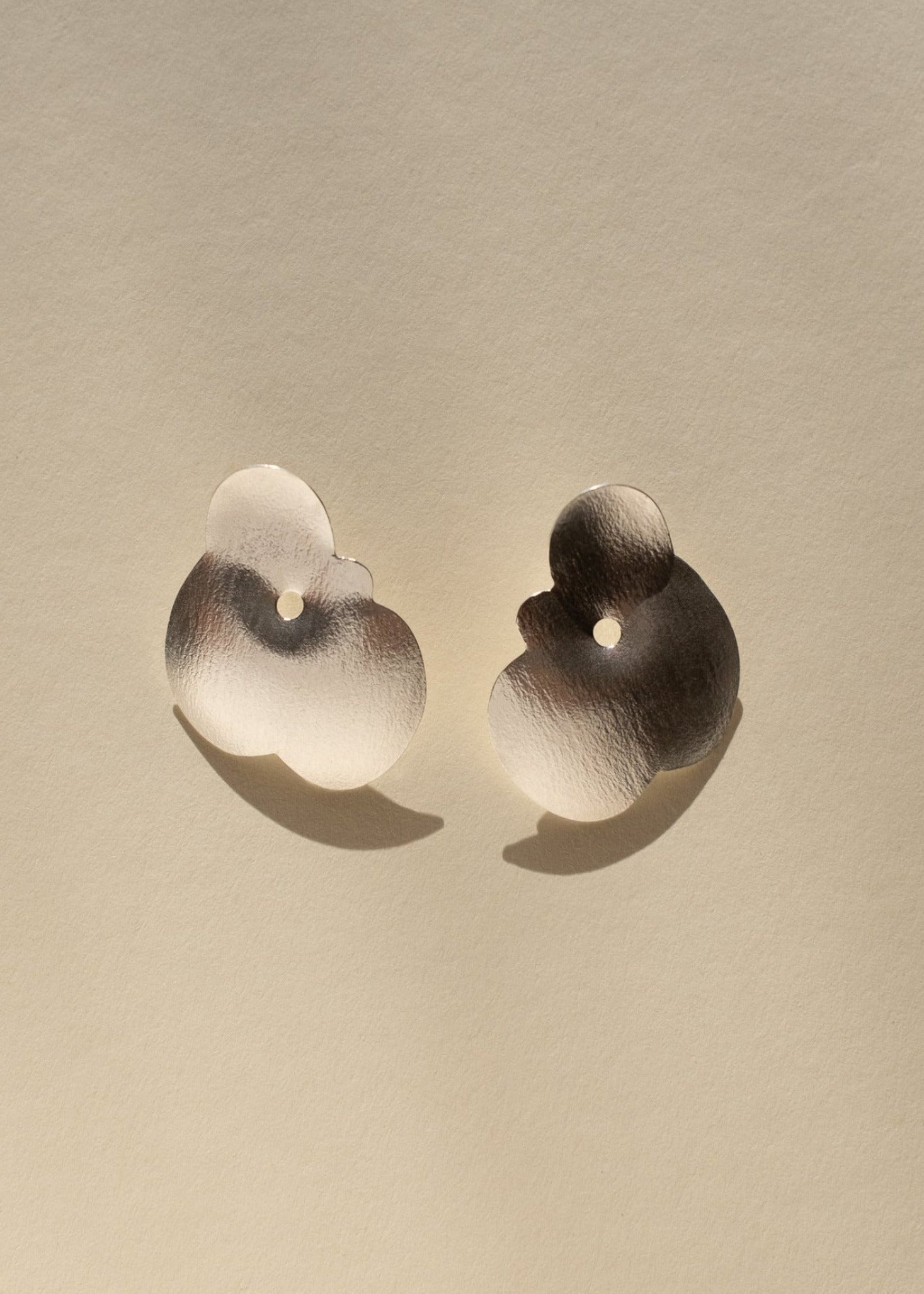Eine weiche, organische Form, geprägt von abgerundeten Konturen. Die MATER Gloam Ohrringe sind angenehm zu tragen, liegen nah am Ohr und umrahmen das Gesicht mit einem warmen, diffusen Glanz. Entworfen und hergestellt von Małgosia und Anastazja in einem TYLA LATO Goldschmiedeatelier in Deutschland.