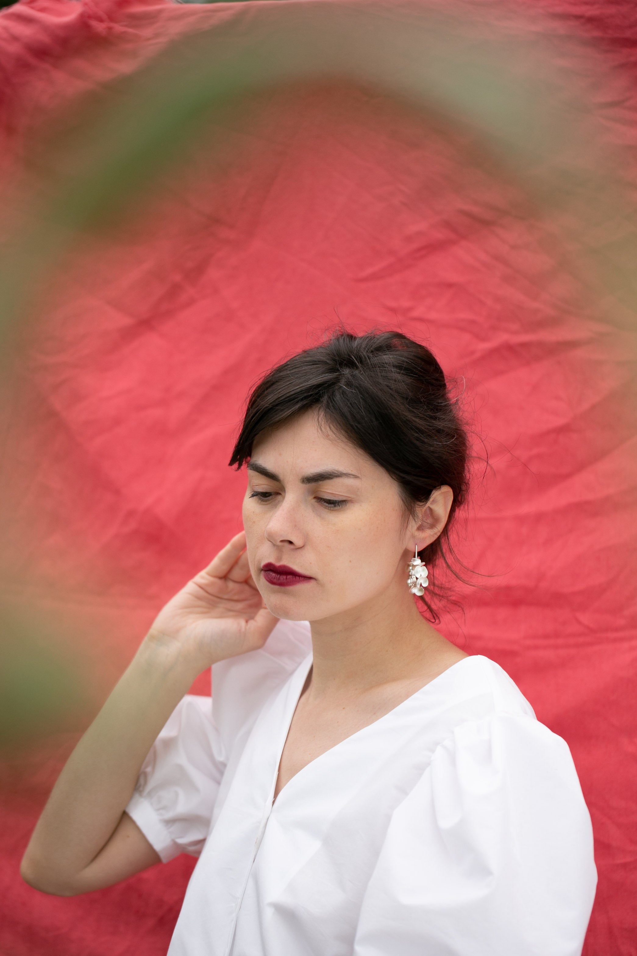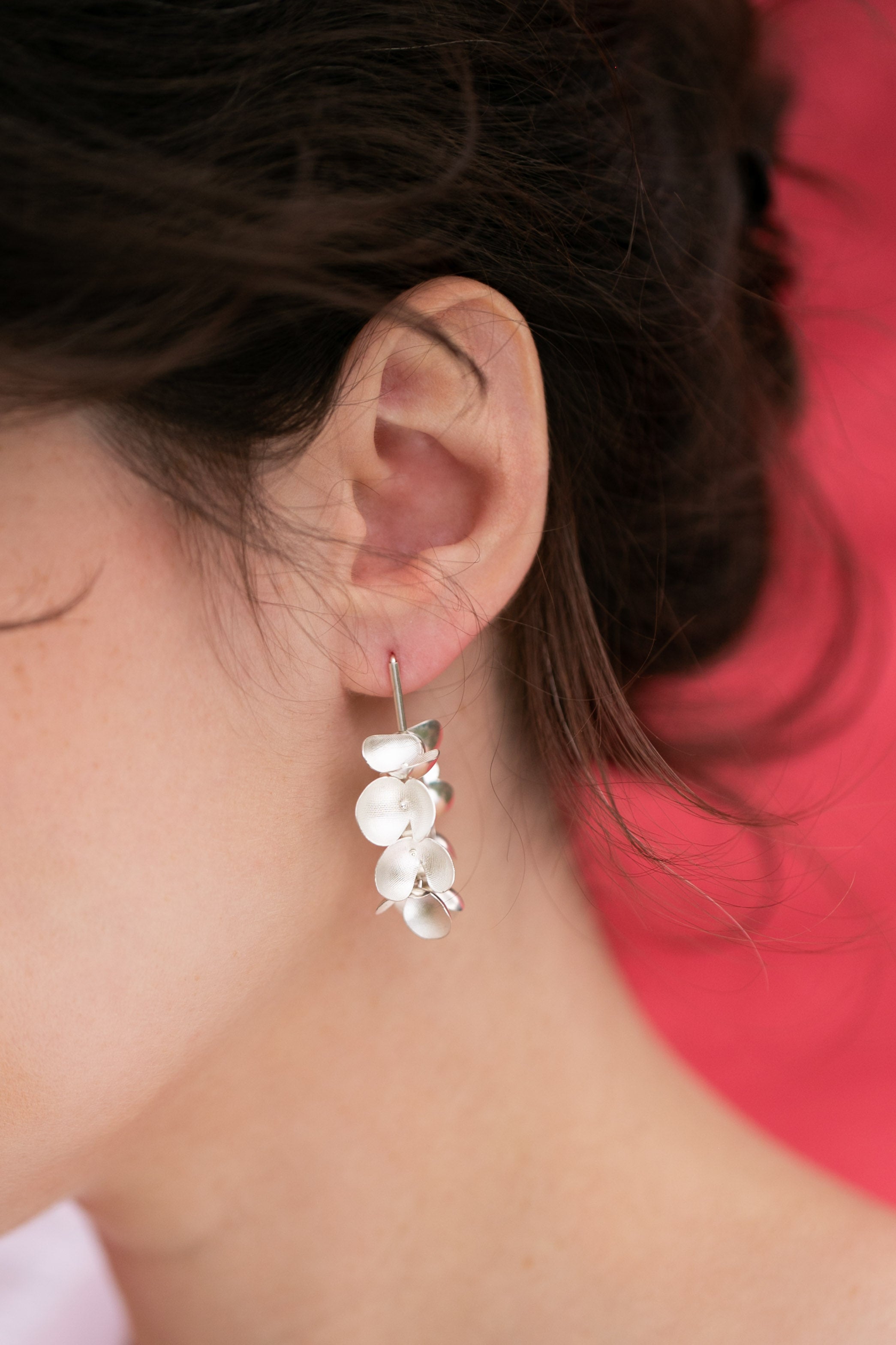 Ein kühnes, ausdrucksstarkes florales Stück voller Bewegung und Licht. Diese Ohrringe verleihen jedem Look einen Funken und heben die Stimmung mit ihrer verspielten Energie. Entworfen und kreiert von Małgosia und Anastazja in einer traditionellen Goldschmiedewerkstatt in Deutschland.
