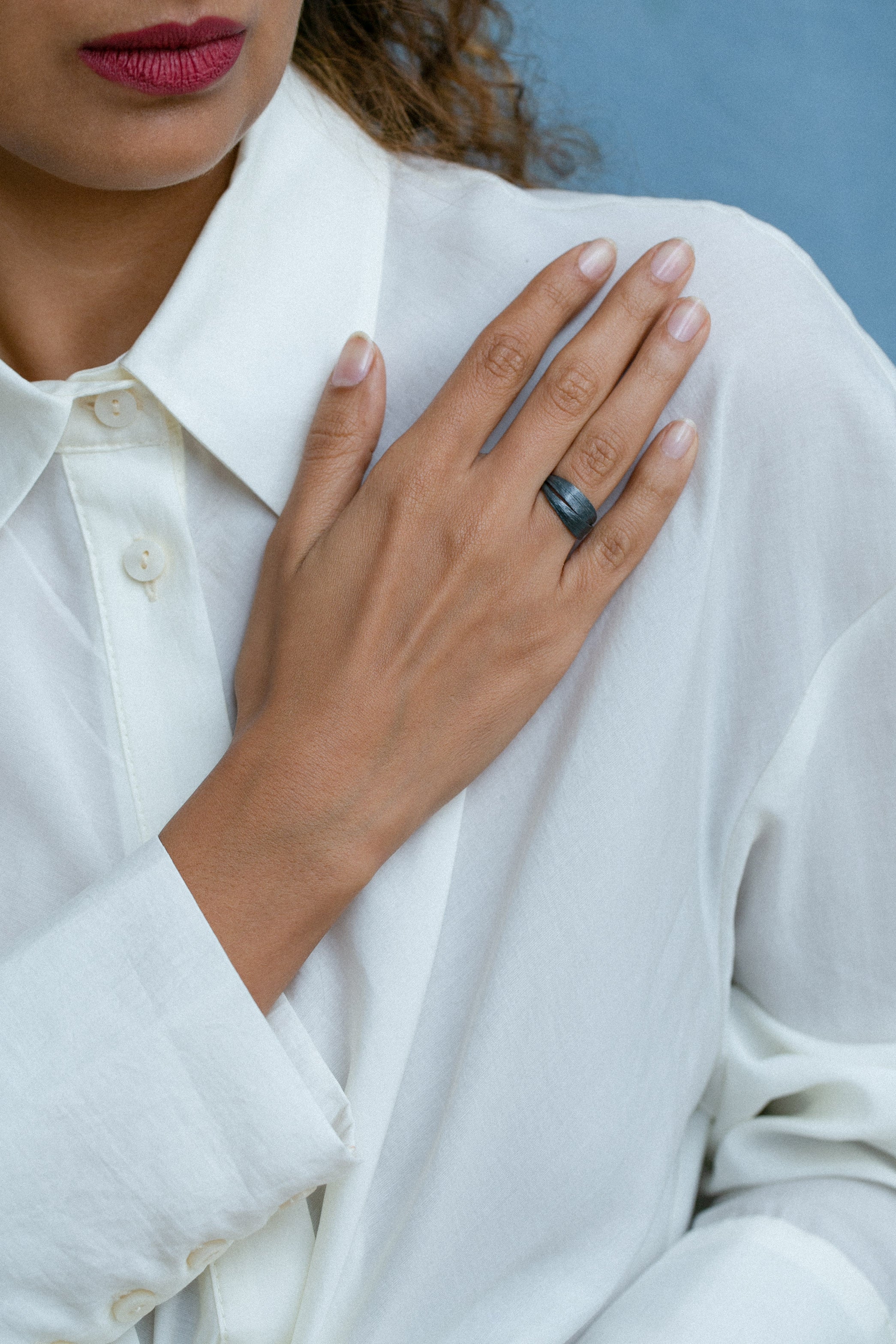 Eine subtile Begegnung zweier organischer Formen, gestaltet zu einem einzigartigen Ring. Er vereint Zartheit und Klarheit. Leicht und angenehm zu tragen, und doch immer ein Blickfang. Seine unverwechselbare Form macht ihn sofort erkennbar. Entworfen und gefertigt von Małgosia und Anastazja in einer traditionellen Goldschmiedewerkstatt in Deutschland.