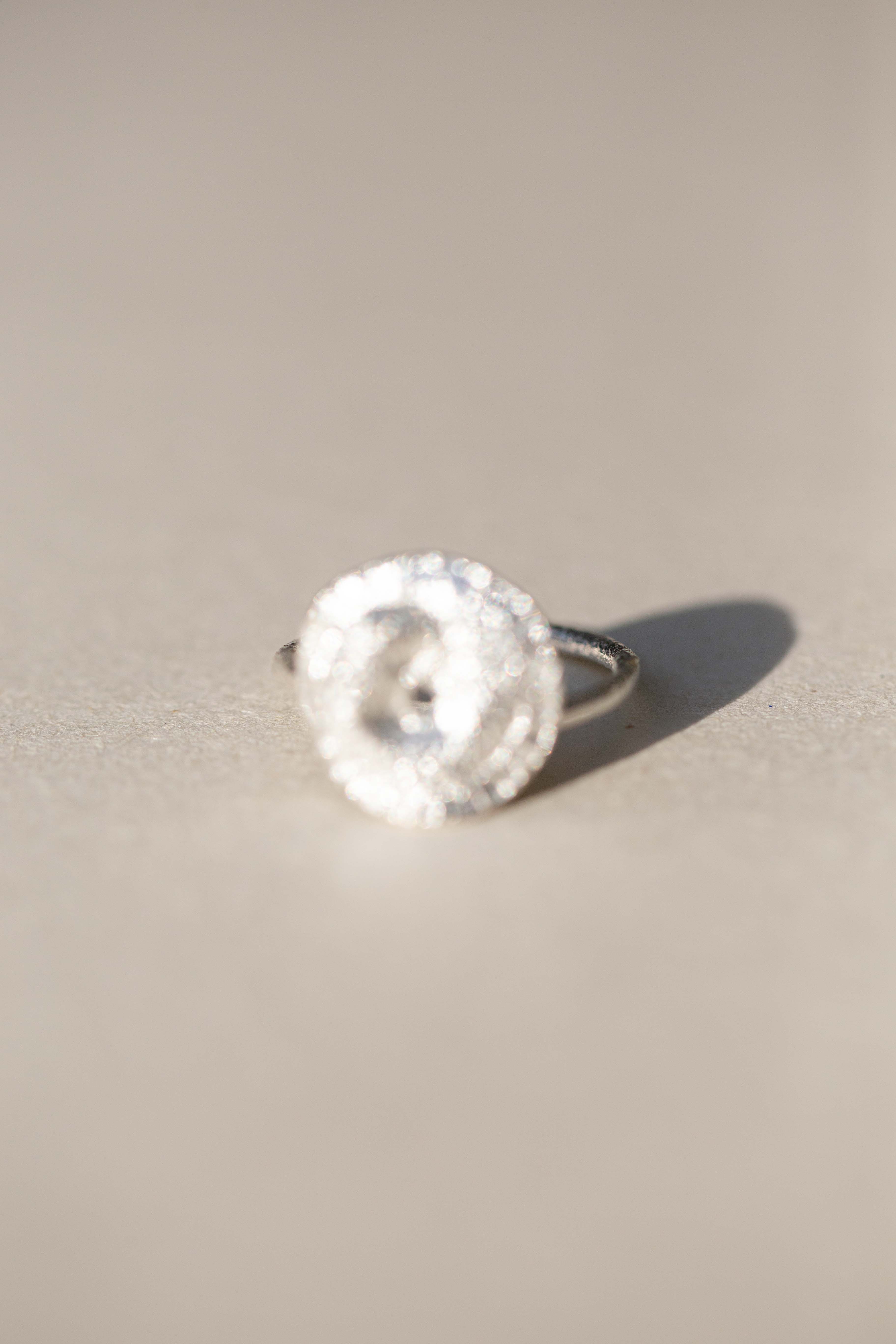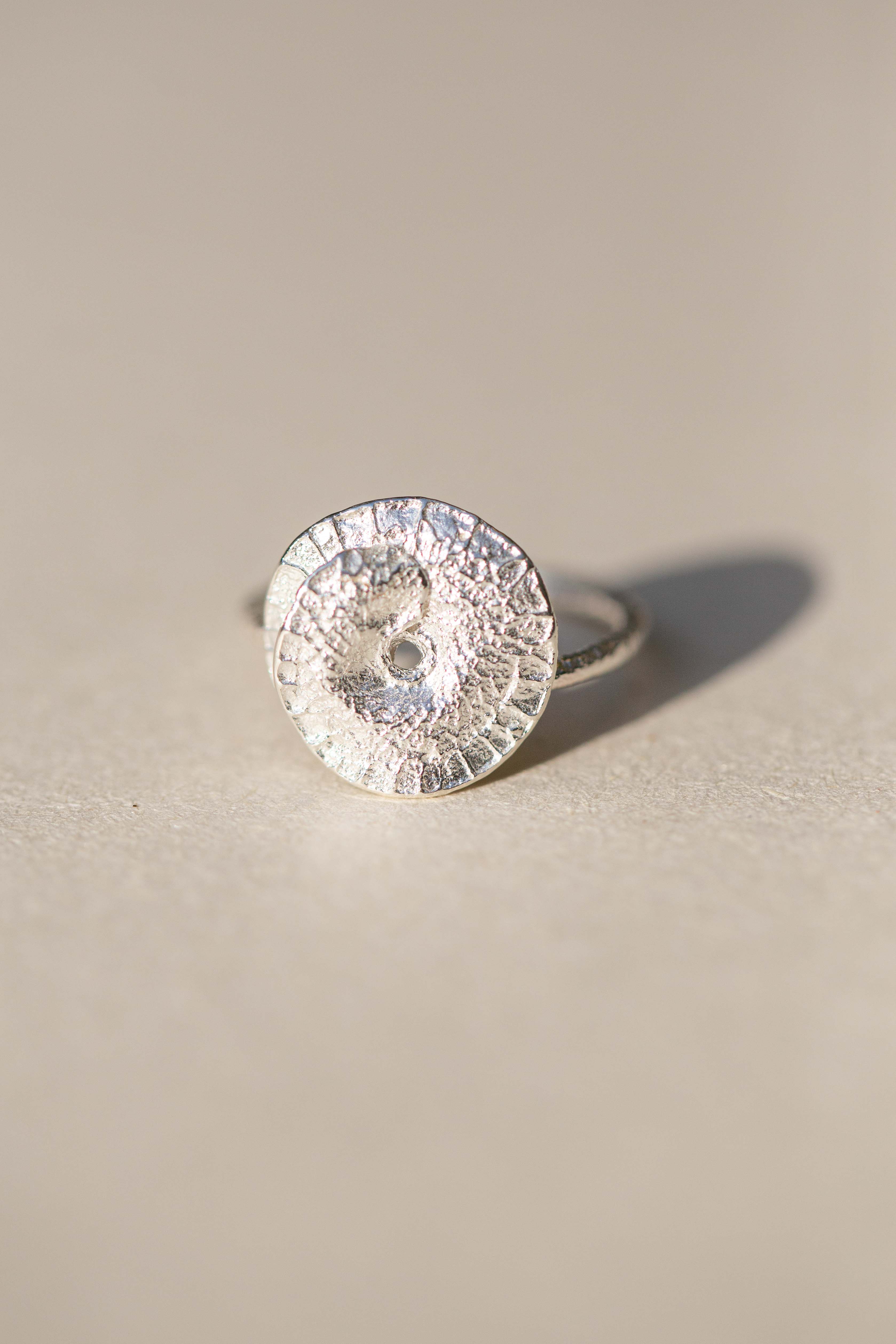 Eine kompakte, skulpturale Form, inspiriert von einem Samen. Glatt und angenehm zu tragen, mit einem leisen Gefühl von Energie in seiner Form. Entworfen und kreiert von Małgosia und Anastazja in einer traditionellen Goldschmiedewerkstatt in Deutschland.