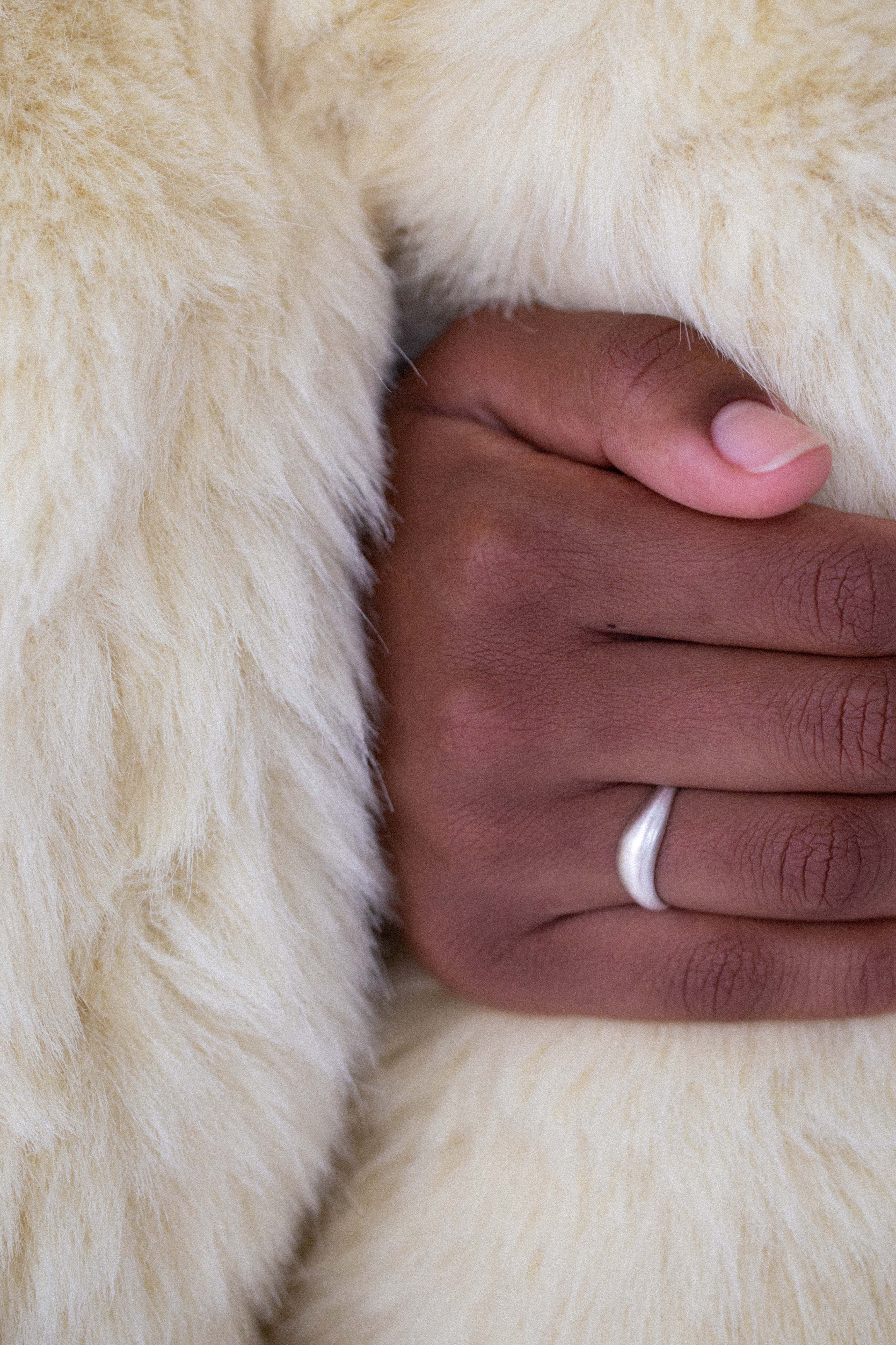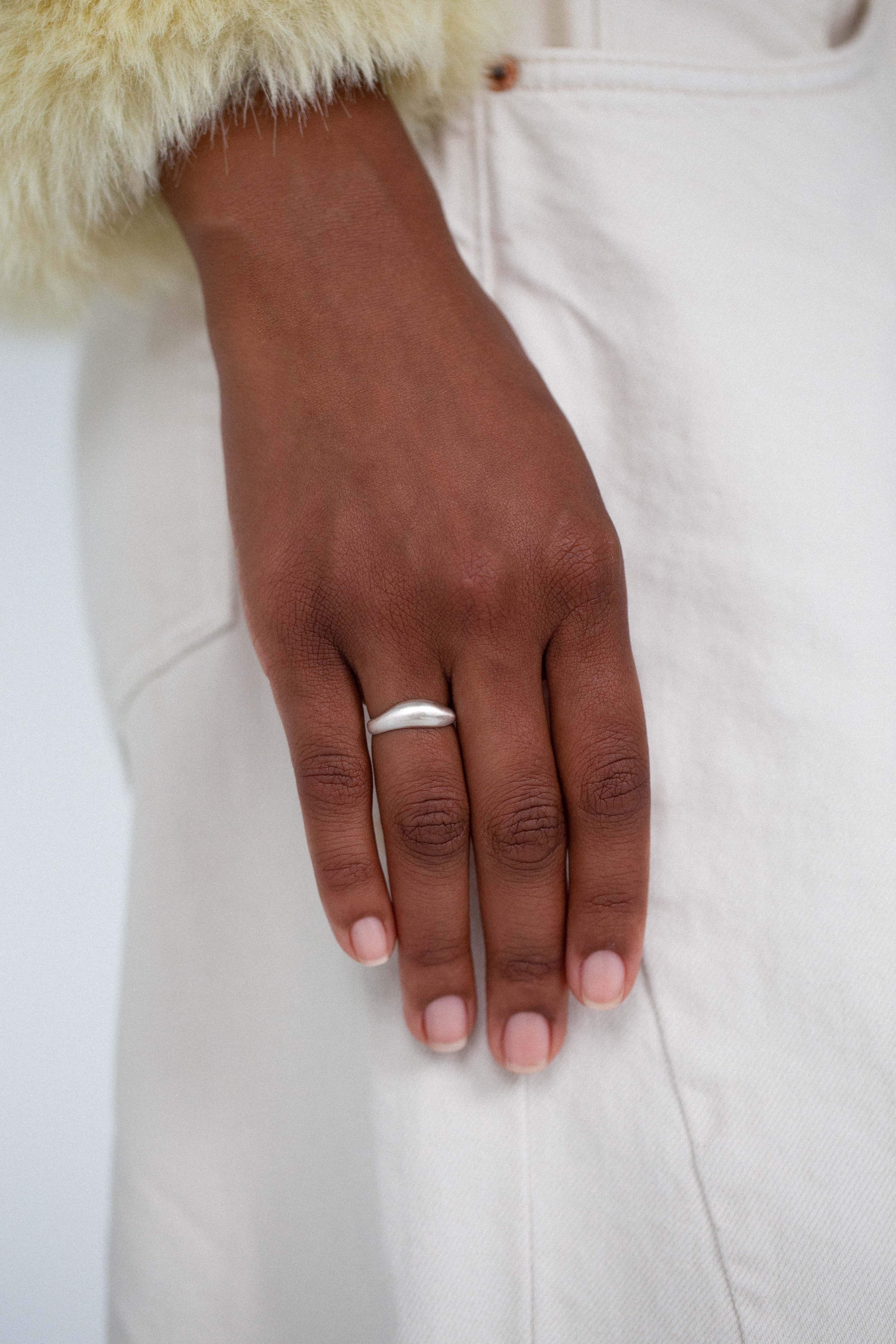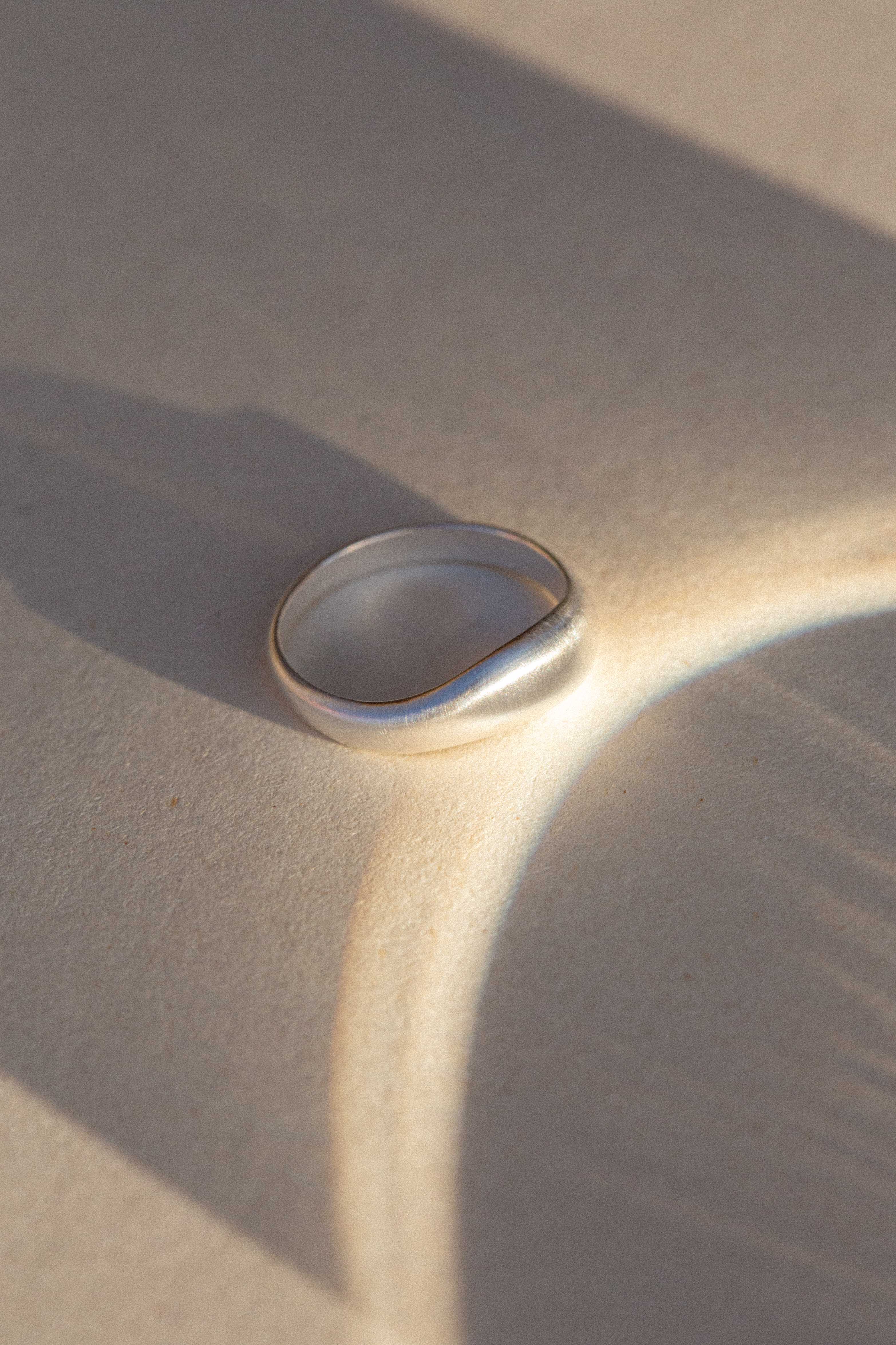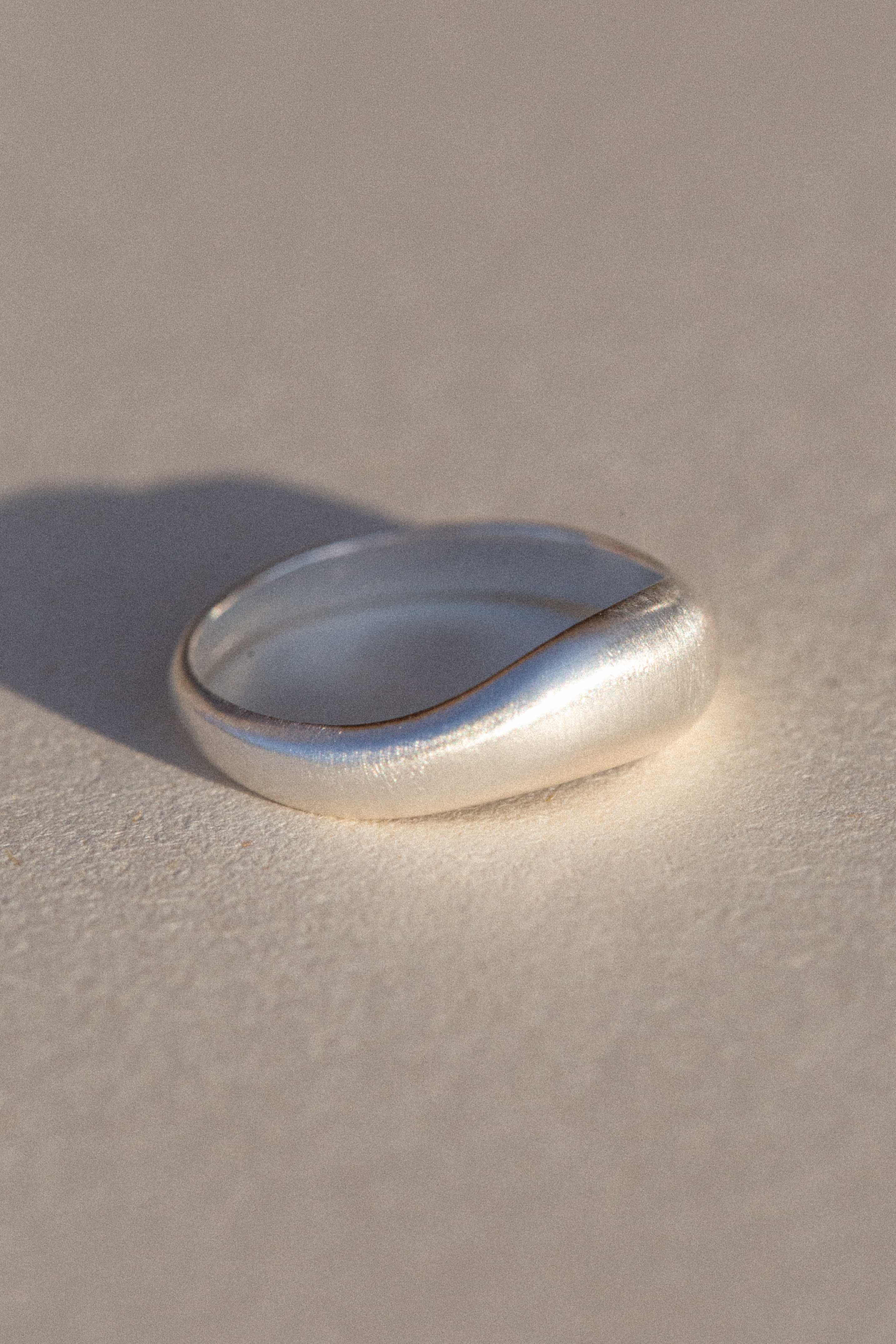 Eine durchgehende, fließende Linie, geformt zu einem skulpturalen Ring. Glatt und angenehm zu tragen, bewegt er sich mit der Hand und vermittelt ein Gefühl von Leichtigkeit und Rhythmus. Entworfen und gefertigt von Małgosia und Anastazja in einer traditionellen Goldschmiedewerkstatt in Deutschland.